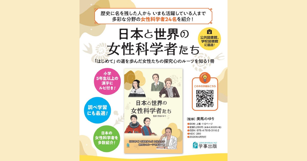 学事出版株式会社は、多彩な分野で活躍してきた女性科学者たちを取り上げた、『日本と世界の女性科学者たち 「はじめて」の道を歩んだ女性たちの探究心のルーツを知る1冊』を刊行いたします。