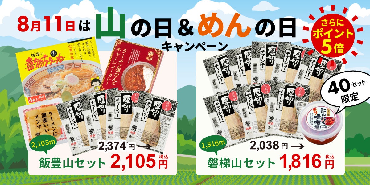 株式会社河京(本社:福島県喜多方市、代表取締役:佐藤富次郎)は、2022年8月11日(木)に『山の日&めんの日キャンペーン』を実施します。