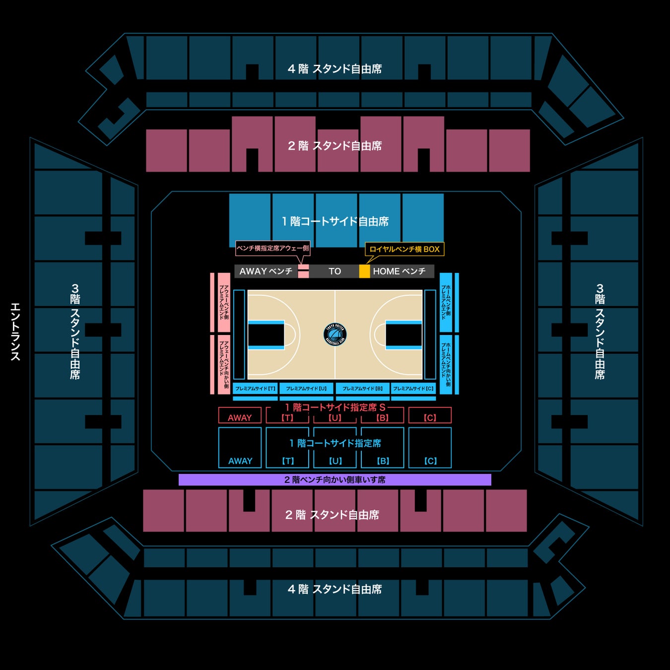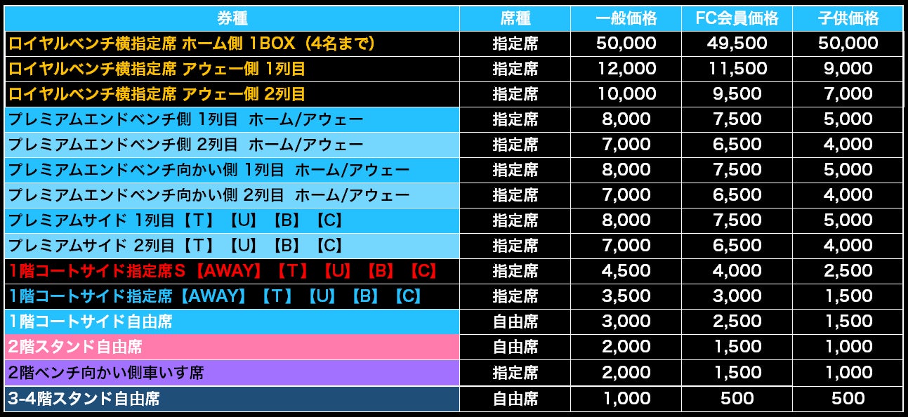 ※1階コートサイド指定席Sは1〜5列目となります。6列目以降が1階コートサイド指定席となります。