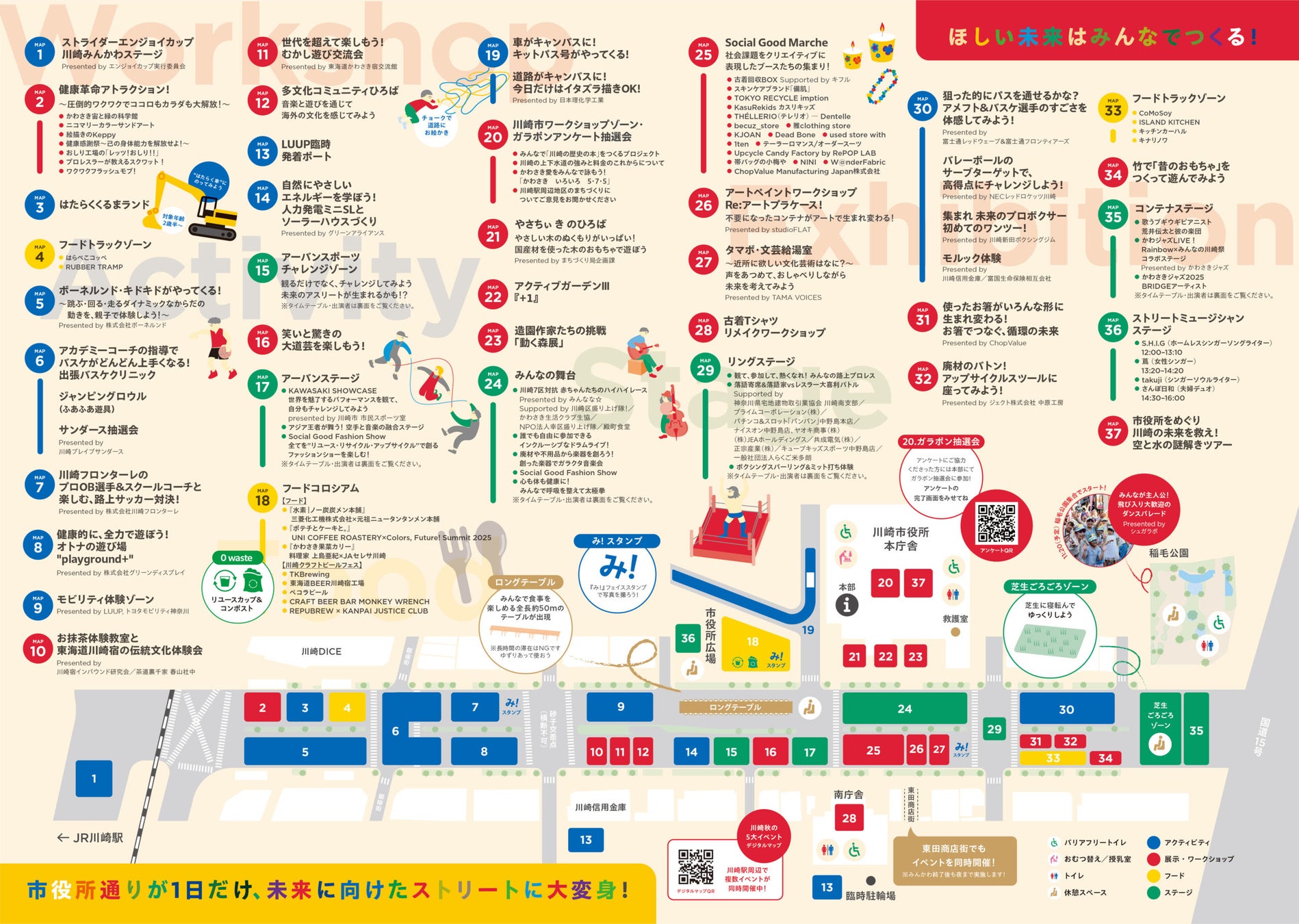 川崎市市制100周年を機に誕生した共創型フェスティバル。川崎駅前の車道約500m・6車線をまるごと歩行者天国にし、スポーツ・ダンス・アート・音楽・フードなど多彩なカルチャーが一堂に集結。子どもから大人まで、観るだけでなく参加しながら未来にチャレンジできる“みんな”のお祭りです。