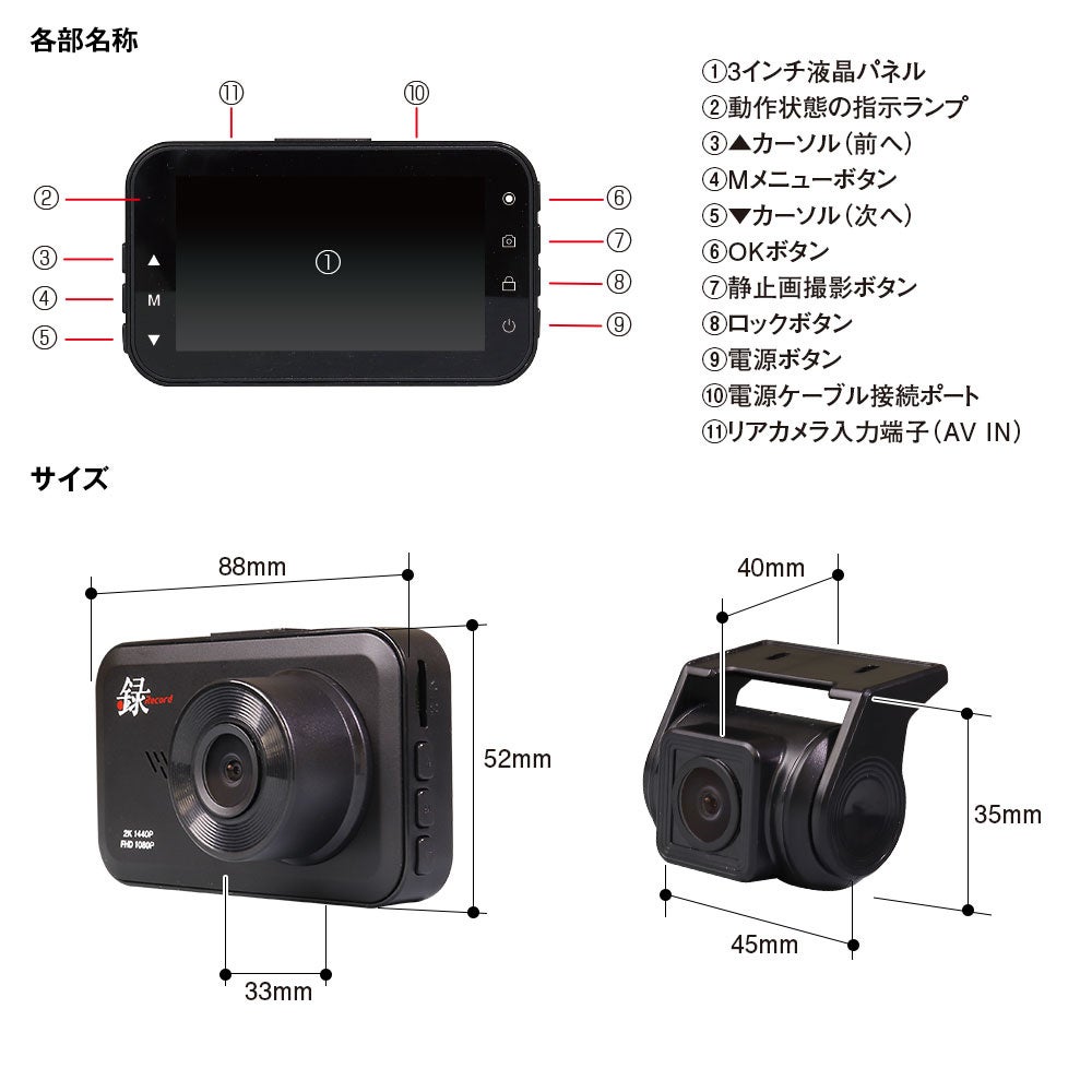 録画解像度:フロントカメラ1440p/1080P、リアカメラ:1080P