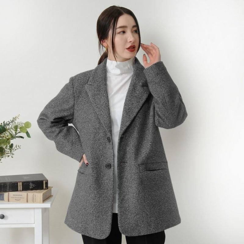 ふんわりと柔らかい生地で仕上げた&estオリジナルのテーラードジャケットは、ニットなども着こめるようにアームホールや肩幅も広めに作りました。丈感もしっかりあるので長めトップスを着た時でも裾感がはみ出さずスマートに着ていただけます。