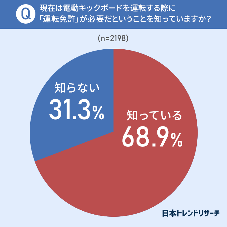【電動キックボード】現在は運転免許が必要 31.1%の方が「知らなかった」