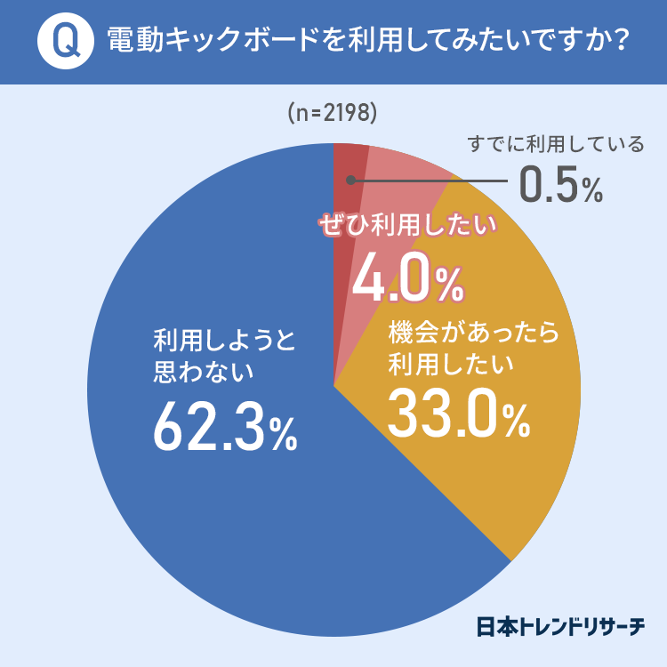 「電動キックボードを利用してみたいか」のアンケート結果は以下のようになりました。