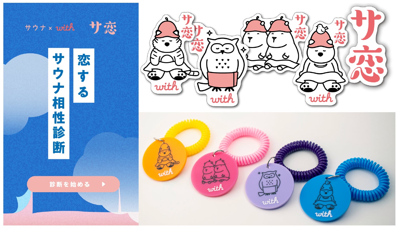 診断結果の提示でもらえるタイプ別の無料ノベルティや、診断を受けた2人が同じ診断結果だともらえる限定フロートのほか、サウナに入りながら音楽が聴ける「聴くサウナ」では、恋愛ソングを中心とした『with』仕様のプレイリストを募集します。浴室内にある薬湯も『with』カラーに染まるなど、様々な仕掛けをご用意しています。