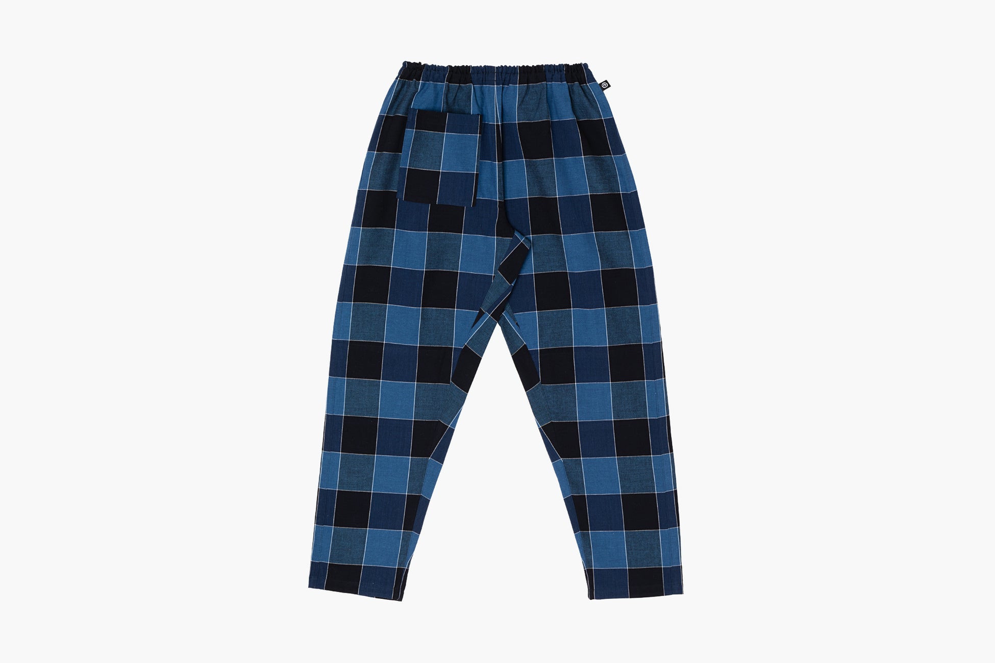 地域⽂化商社うなぎの寝床(福岡県⼋⼥市)は、昔ながらのもんぺに近い、ゆったりとしたシルエットのファーマーズMONPE(もんぺ)の新柄「筋入弁慶」を3月23日より販売開始しました。 久留米絣ならではの風合いの良さを体感ください。