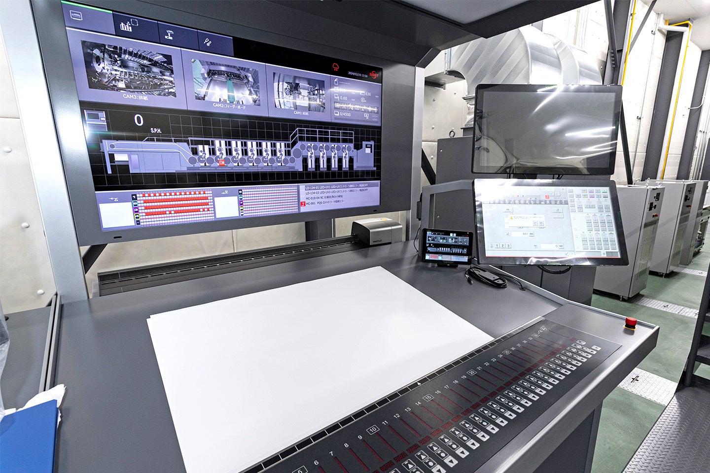 新たに導入した枚葉機(タンデム1号機=RMGT1060TP-9(LED))は、印刷品質管理システム(品質検査・濃度管理・自動見当調整)を搭載しており、印刷品質の安定化を実現します。