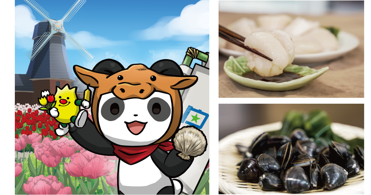 キャラクターはリーリーを採用し、アイテムには特産品のほたて、イメージキャラクターのチューピット、背景にはチューリップ公園をあしらっています。
