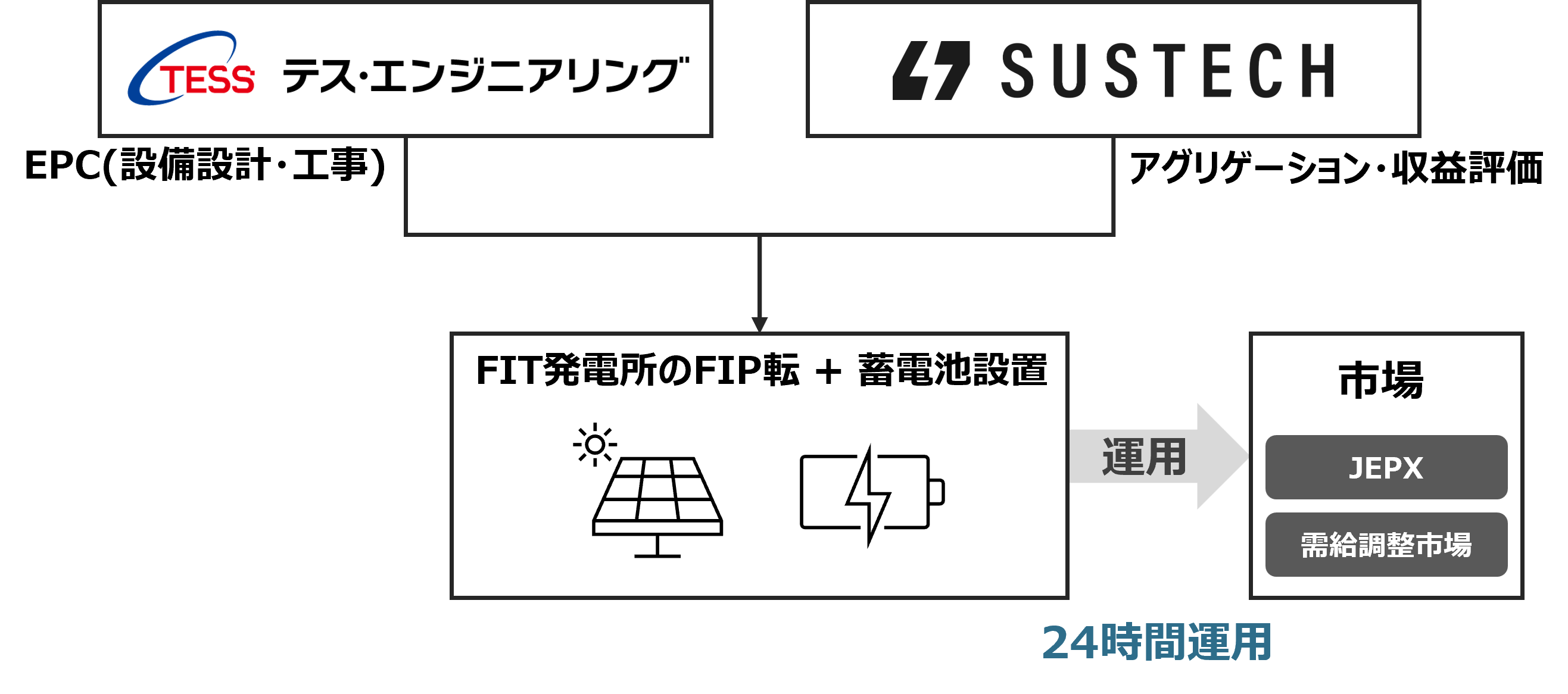 Sustechとテス・エンジニアリング、需給調整市場運用を前提とした「FIP転換×蓄電池併設モデル」にて協業開始