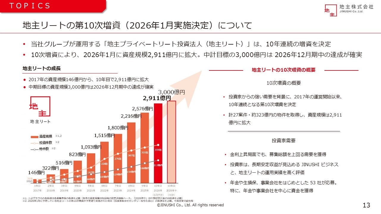 5.地主リートの第10次増資(2026年1月実施決定)について
