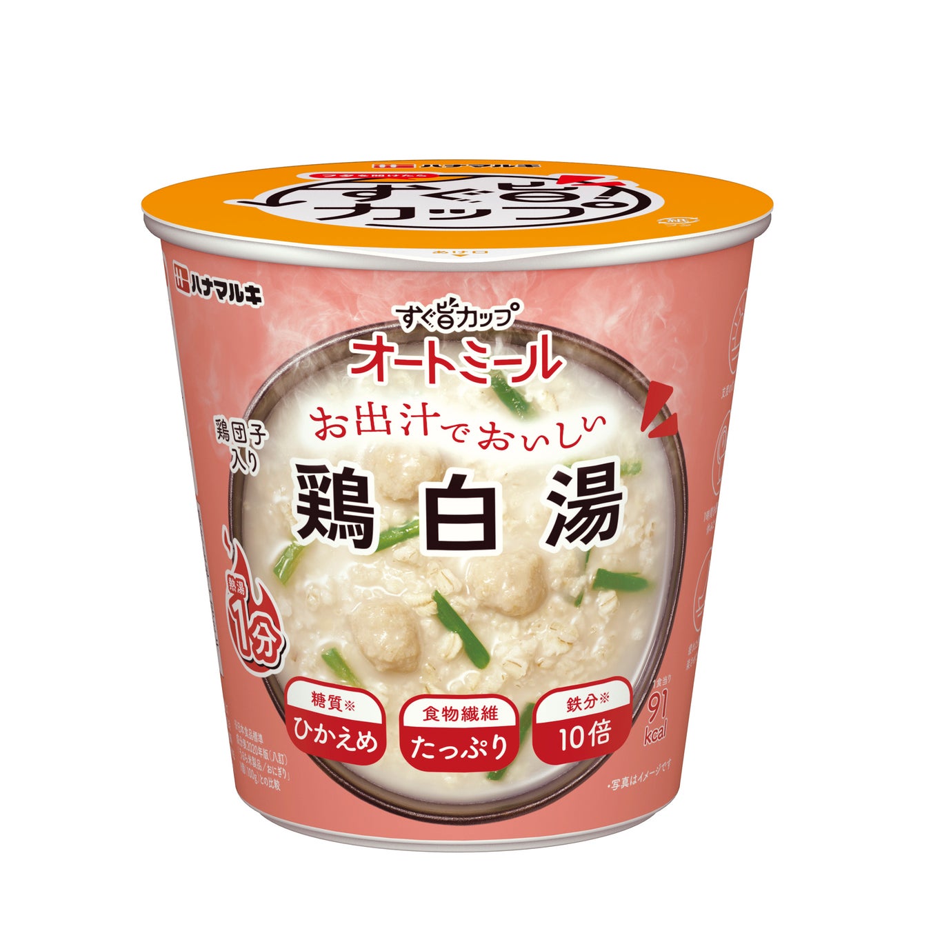 すぐ旨カップオートミール かきたま、鶏白湯、海苔わさび、キムチチゲ