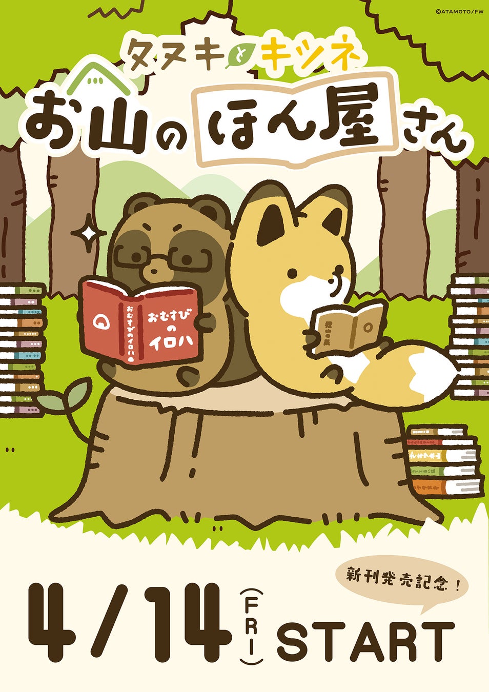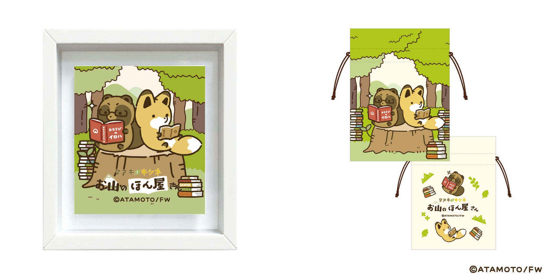 「タヌキとキツネ」と本屋さんの限定コラボグッズ『タヌキとキツネ お⼭のほん屋さん』が4月14日(金)より発売