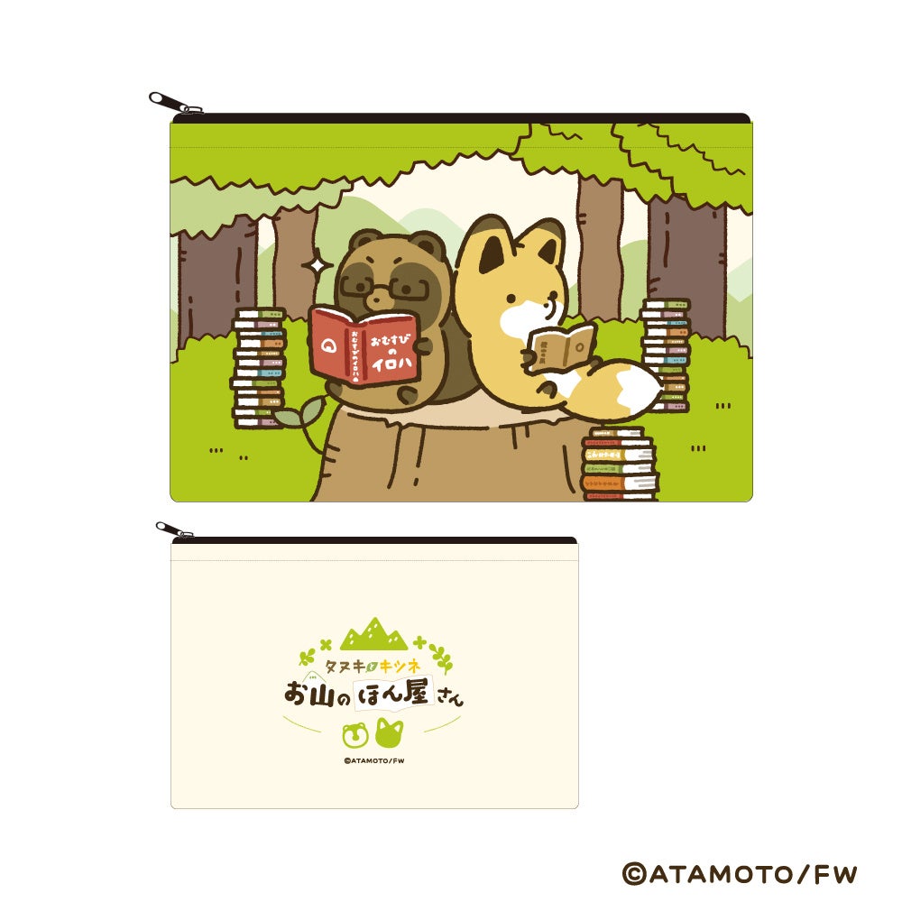 フラットポーチ タヌキとキツネ お山のほん屋さん 1,650円(税込)