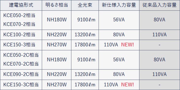 また、これまで対応できなかったNH270W相当(KCE150相当:110VA)をラインアップに追加。