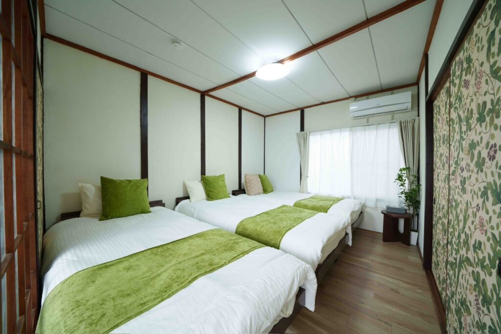愛知県岩倉市の物件: 名古屋駅から約20分という立地で、広めの空間を好む家族連れや車利用の宿泊者に支持されています。壁や床の全面的な張り替え、キッチンやバスルーム、トイレなどの水回りの一新により、宿泊単価を引き上げる戦略が成功しています。