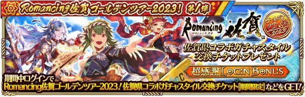 <1> Romancing佐賀ゴールデンツアー2023!佐賀県コラボガチャスタイル交換チケットプレゼント超感謝ログインボーナス開催!