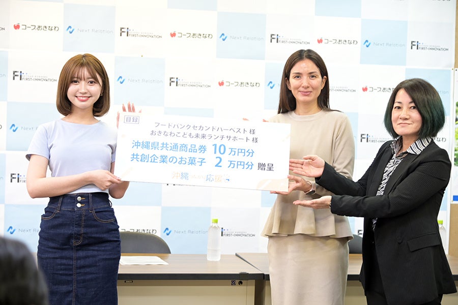 そしてこの度、沖縄県共通商品券の当選者のうち寄付を選択した方々の善意を、タレントのあやちさんと共にフードロスや子どもたちの支援に取り組む団体へ贈呈致しましたので、ご報告いたします。