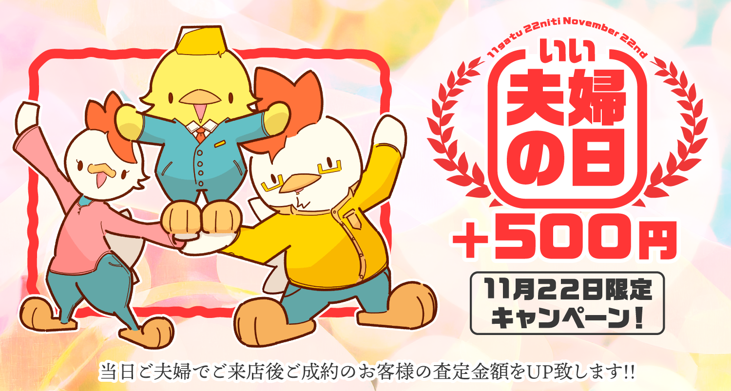 【ゴールドプラザ】11月22日はいい夫婦の日!ご夫婦でご来店の際にご成約で500円キャッシュバックキャンペーン!!