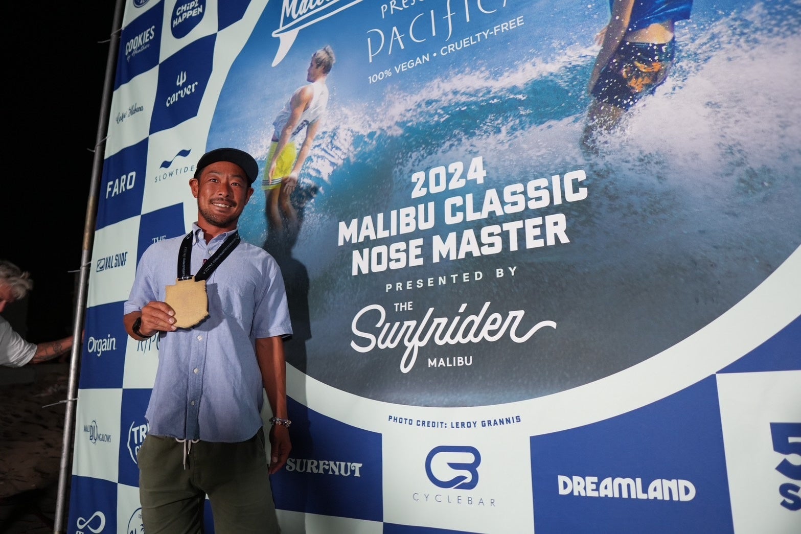 「素直に嬉しいですが、まだ、信じられない気持ちもいっぱいです!ファイナルのメンバー、それまでのメンバー達がすごかったので、勝てたことがめちゃくちゃ嬉しいです!僕のサーフィンが、マリブのジャッジの方々に認められたと言うことで、本当に嬉しいです!!!大好きなマリブに戻って来れた事を、この機会を作ってくれた全ての方に感謝したいと思います。ありがとうございました」