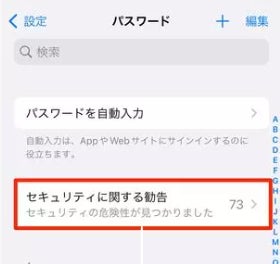 勧告メッセージが出た場合、「パスワード」の項目からメッセージを開くことで、街頭のパスワードを削除することが可能です。