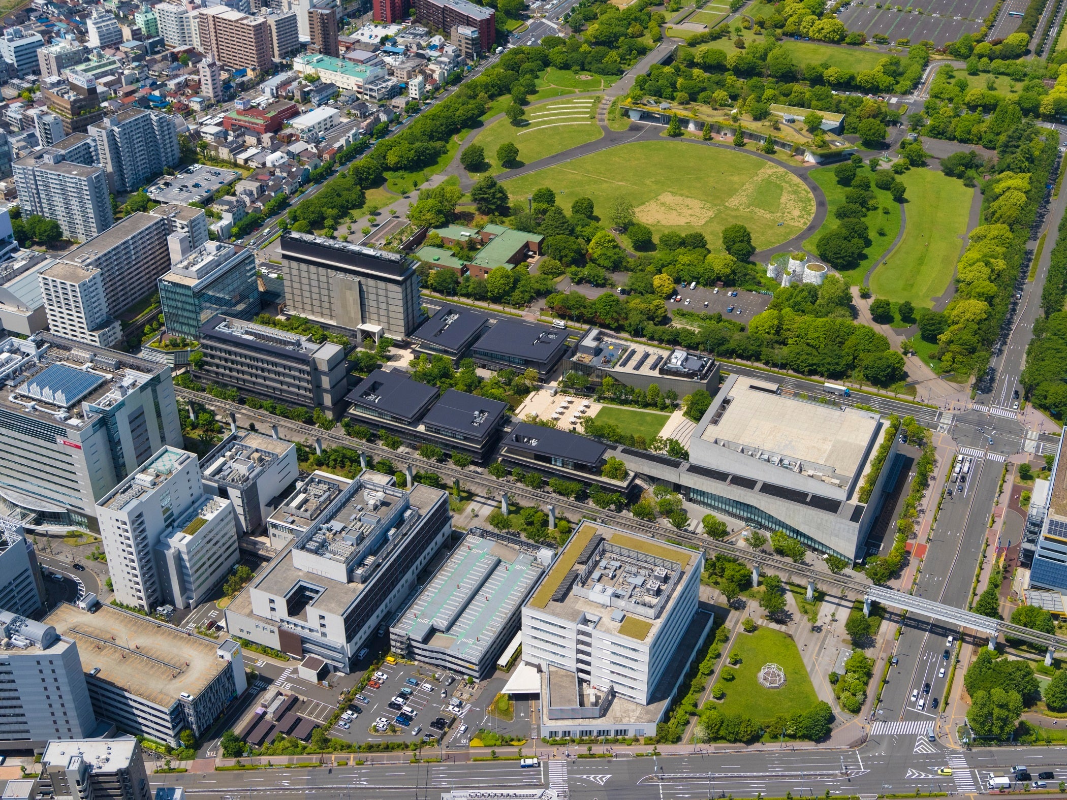 2020年4月にオープンした、ウェルビーイングをテーマとした複合施設です。水と緑豊かな約1万㎡の中央広場を中心に、最上階にインフィニティプールを有するホテル、多摩地区最大規模約2,500席の多機能ホール、ショップ・レストラン、オフィスなどが配置されています。