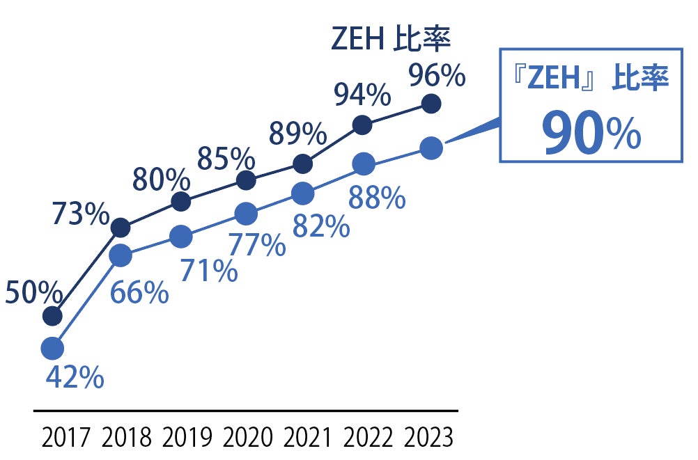 2023年度新築戸建住宅のZEH比率96%(※1) 当社過去最高を7年連続更新