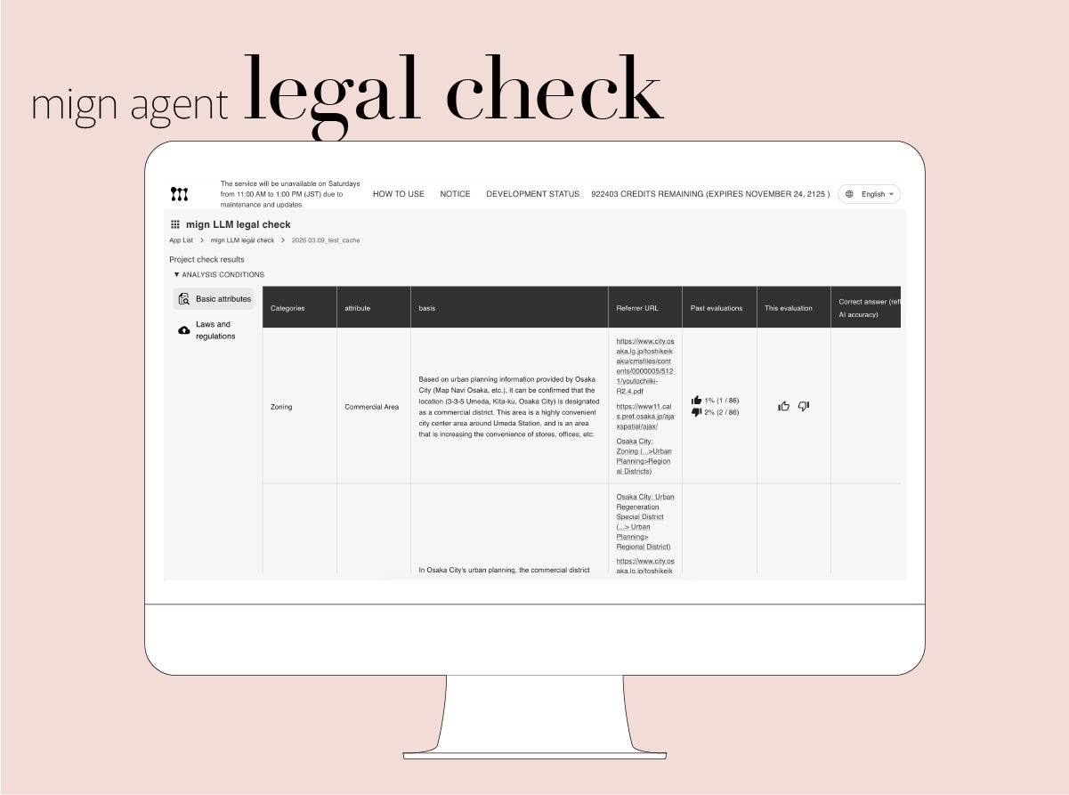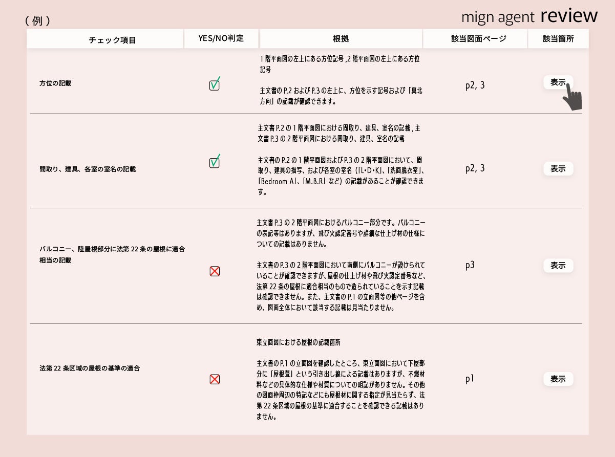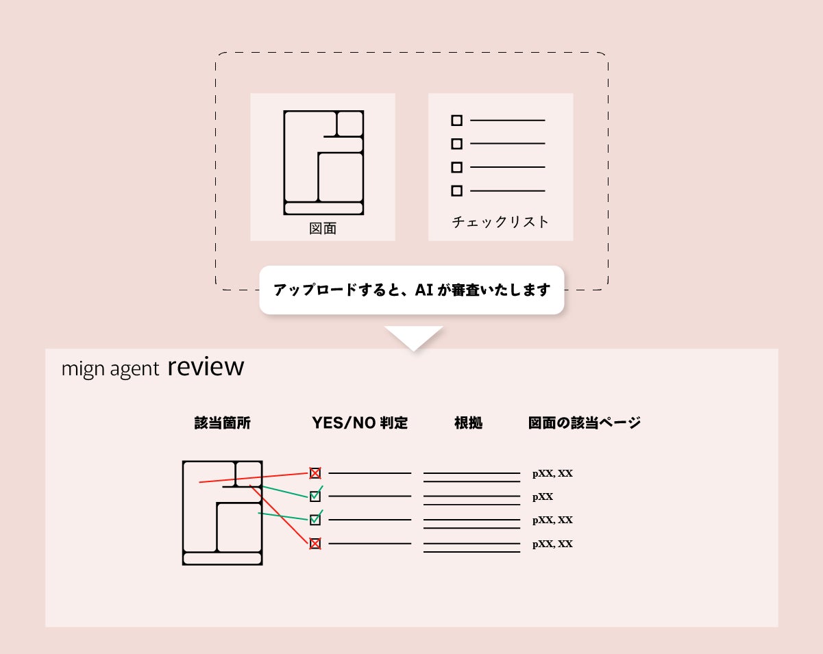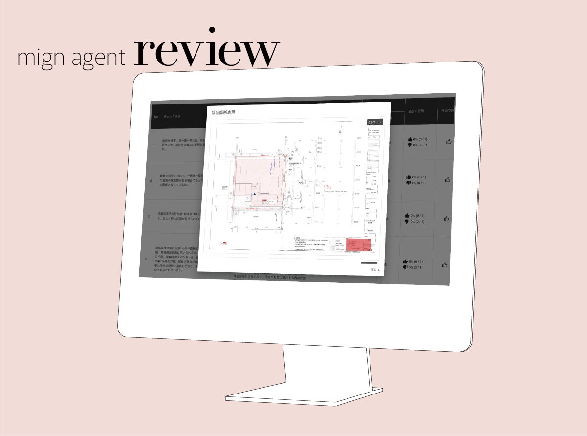 特にmign agent reviewは、建築確認などの審査をAIによって効率化します。審査会社や申請するデベロッパーや設計会社にお使いいただいています。