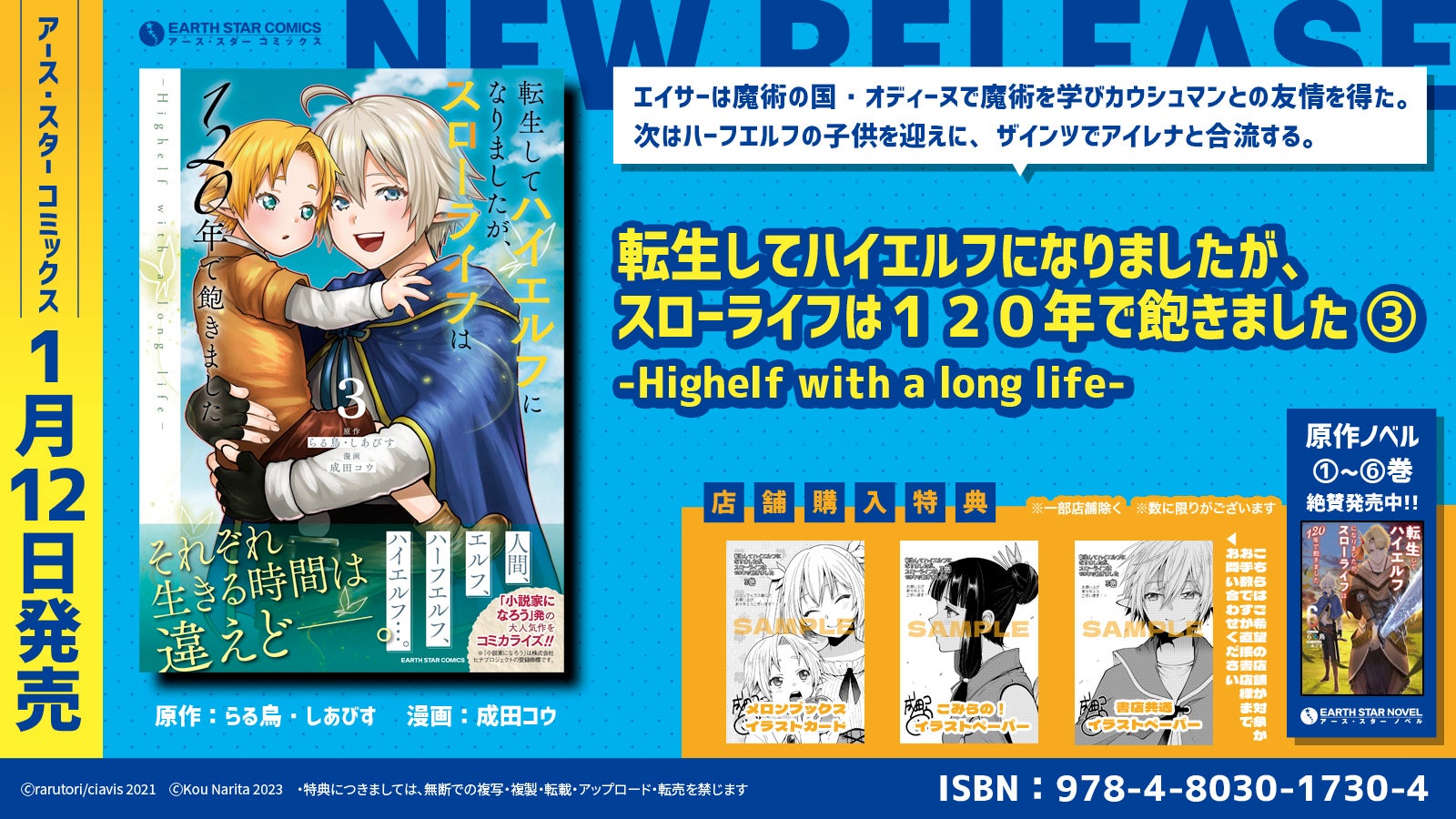 アース・スターノベルで刊行中のノベルが原作で、現在コミック アース・スターで連載中の人気作品『転生してハイエルフになりましたが、スローライフは120年で飽きました -Highelf with a long life-』第3巻を1月12日(木)に発売いたします。
