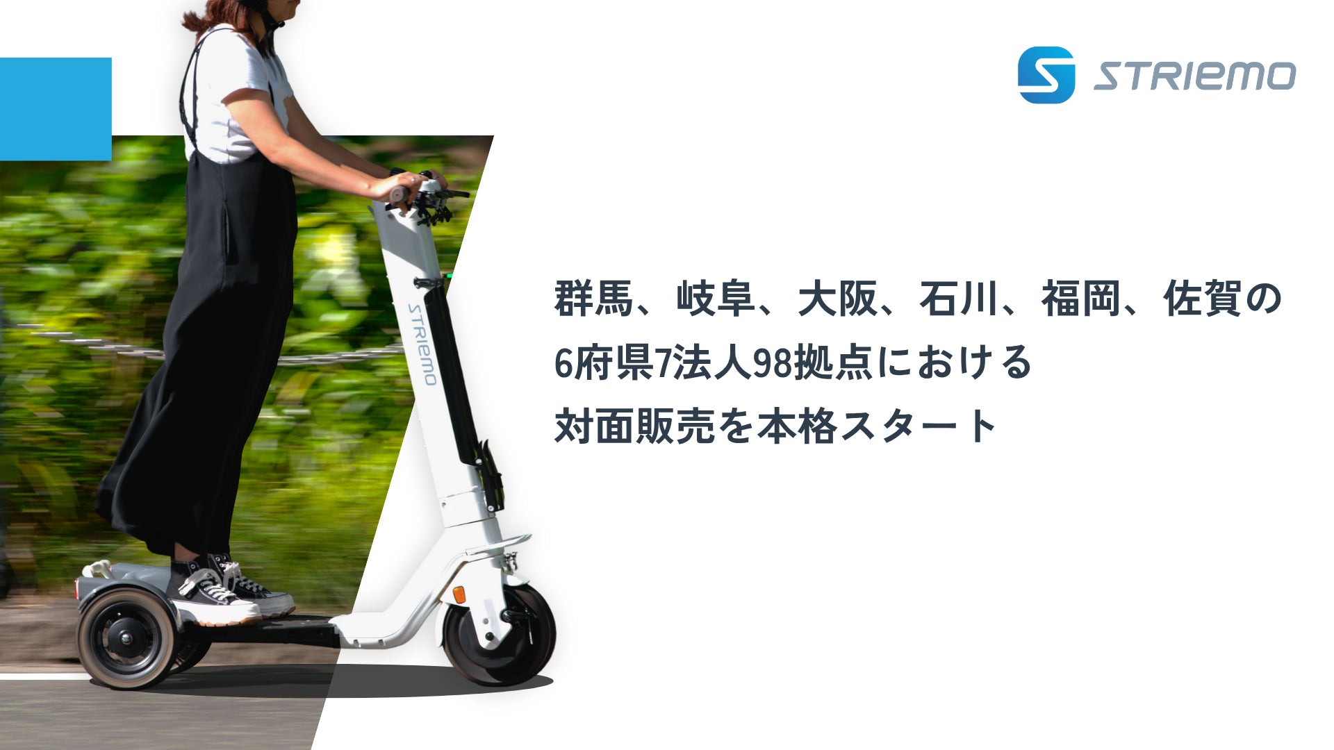 株式会社ストリーモ(本社:東京都墨田区、代表取締役:森 庸太朗、以下「当社」)は、これまでウェブサイトでの販売を中心に展開してきた立ち乗り三輪モビリティ「ストリーモ」について、2025年10月1日より新たに対面販売を強化し、群馬、岐阜、大阪、石川、福岡、佐賀の6府県、7法人98拠点での店頭販売を開始することをお知らせします。