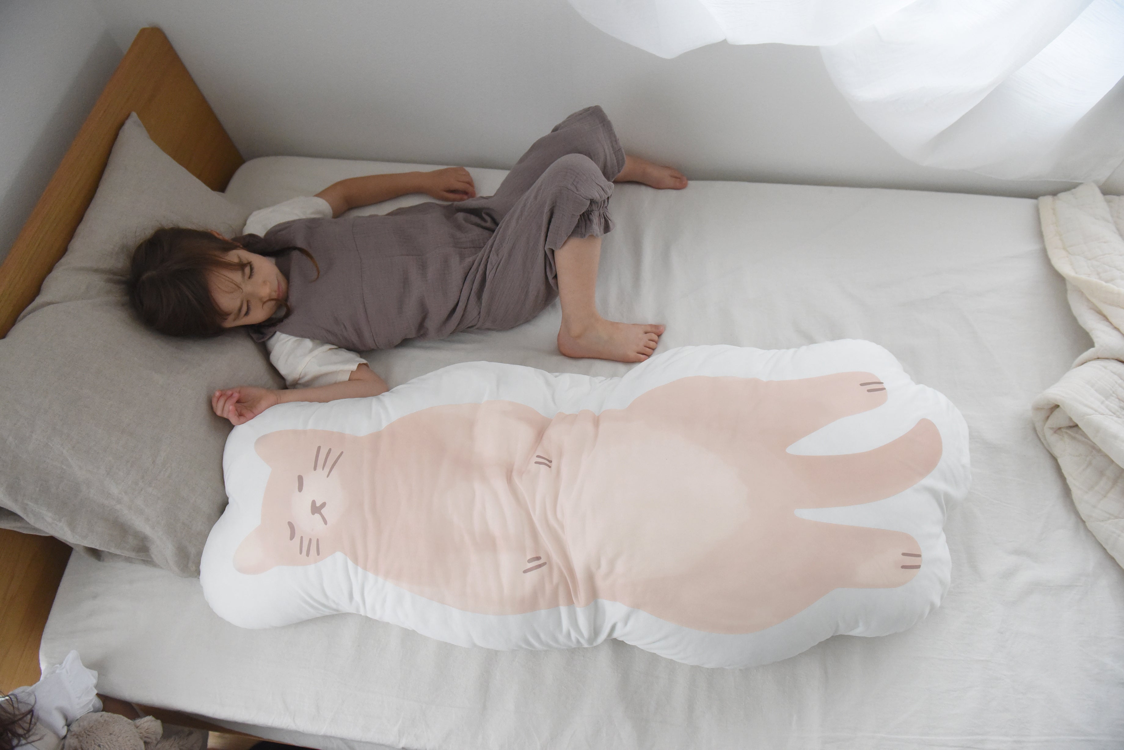 また、キッズ向けの「接触冷感抱き枕」は、無地のものや、動物・キャラクターモチーフの商品が主流で、「インテリアに馴染みにくい」。そんなママの声を反映し、かわいらしいモチーフを活かしながらも、優しくニュアンスのあるカラーリングに仕上げました。子ども部屋はもちろん、リビングにも馴染むデザインがポイントです。
