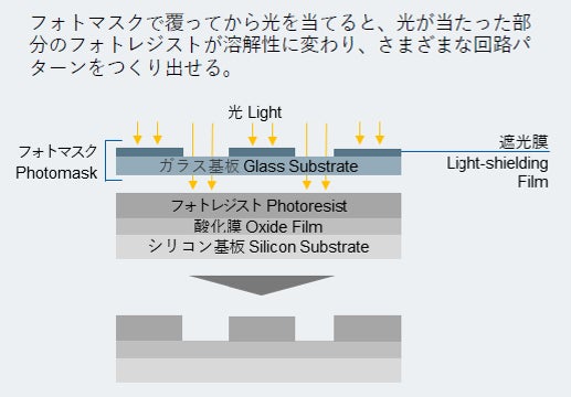 フォトレジスト用感光性ポリマーは、半導体の回路パターンをウエハーに転写するフォトリソグラフィー工程で使用されるフォトレジストの主成分となる樹脂です。当社グループのリソマックス™は、金属含有量や不純物が少ないため、半導体の回路の微細化にともなう高度な品質要求に対応できることから、多くのフォトレジストメーカーに採用されています。中でも、一層の微細化に不可欠なArFフォトレジストおよびEUVフォトレジストは日本企業が圧倒的なシェアを持ち、今後も市場成長が見込まれることから、原料であるリソマックス™の需要も着実に拡大することが見込まれます。