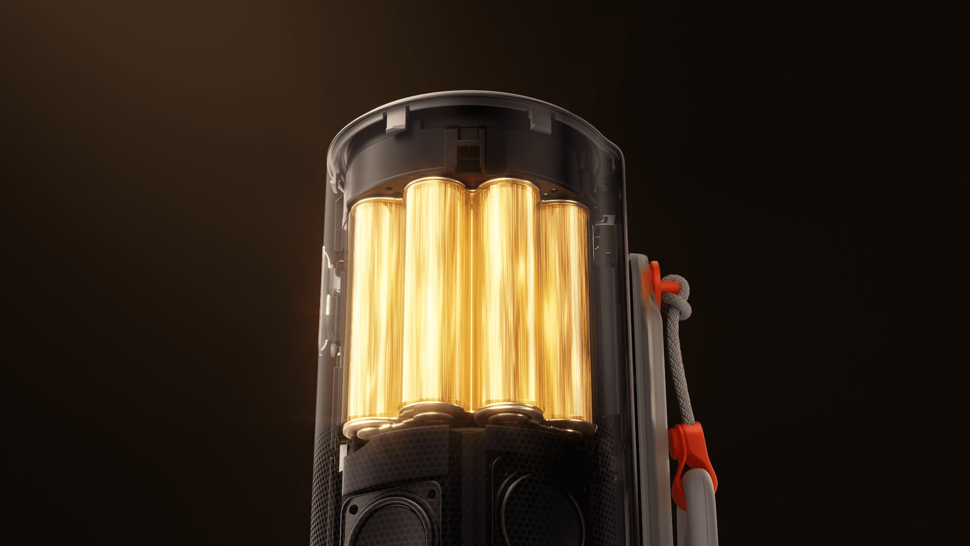 ・プロジェクター、Aladdin OS、Harman Kardo製スピーカー、ライト、スタンド、バッテリー、星空投影を1台に搭載。