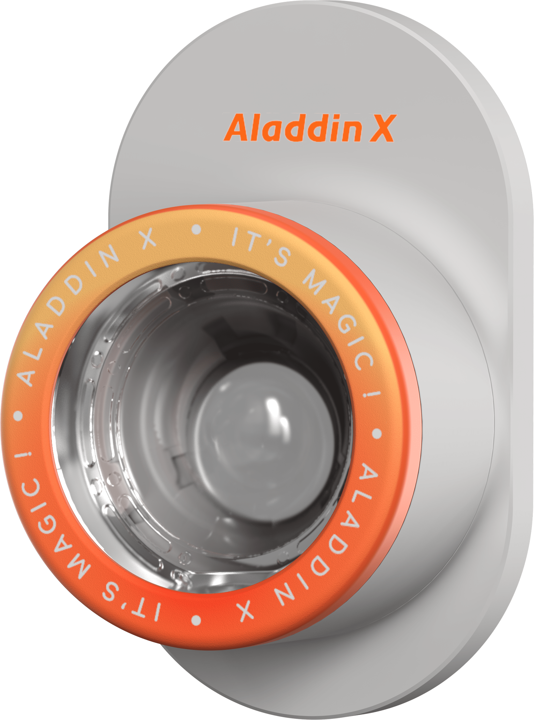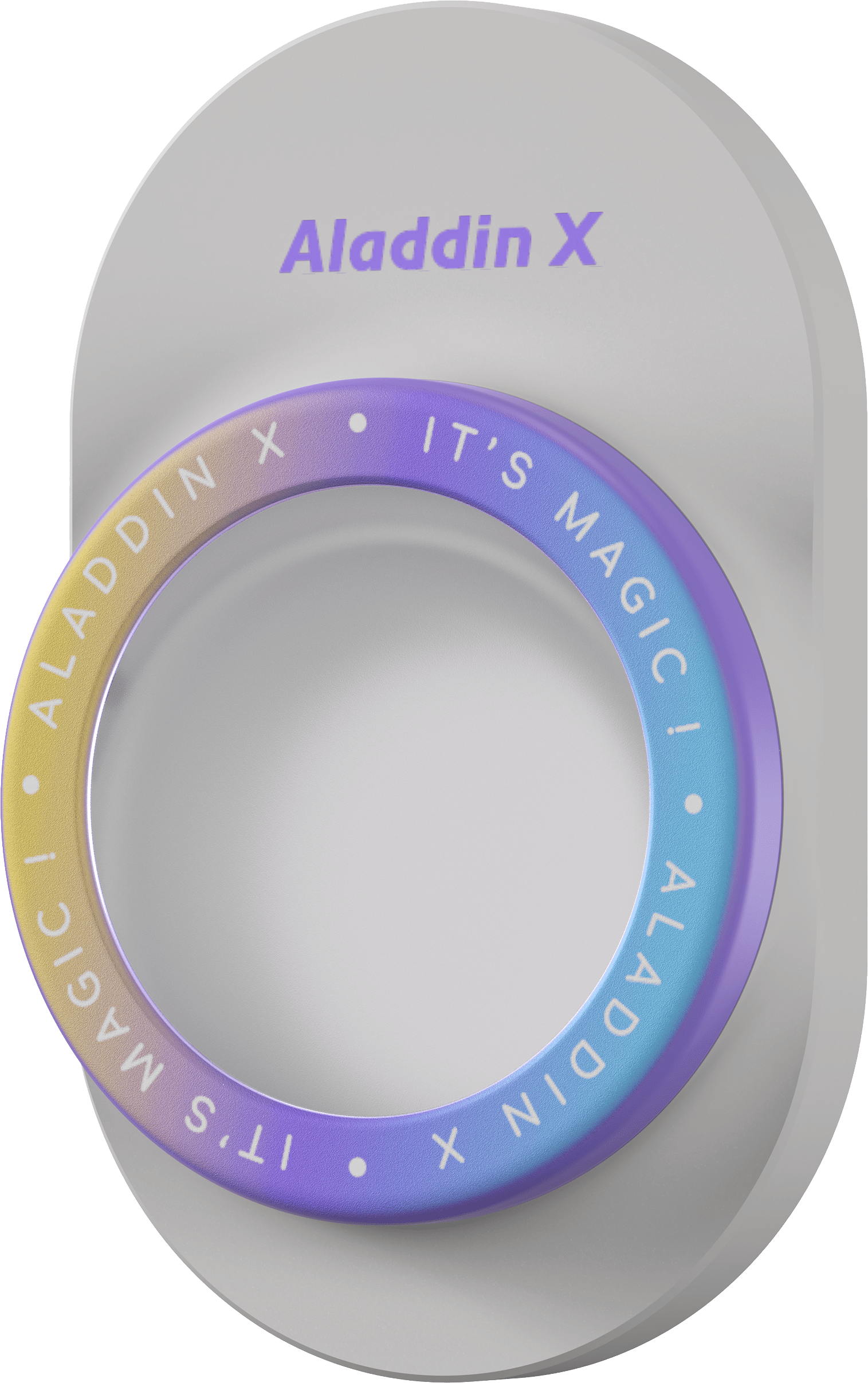 ・マグネット式で簡単に装着可能な2種類のレンズ「Aladdin Lens A」 「Aladdin Lens B」 を用意。「Aladdin Lens A」では画面を5倍に拡大、星空観察で幻想的な雰囲気を楽しめます。「Aladdin Lens B」ではやわらかな光で癒しやリラックスした雰囲気を演出します。2つのレンズで合計100種類以上※2の厳選素材を収録し、専用アプリ「ほしぞらさんぽ」からいつでも体験できます。