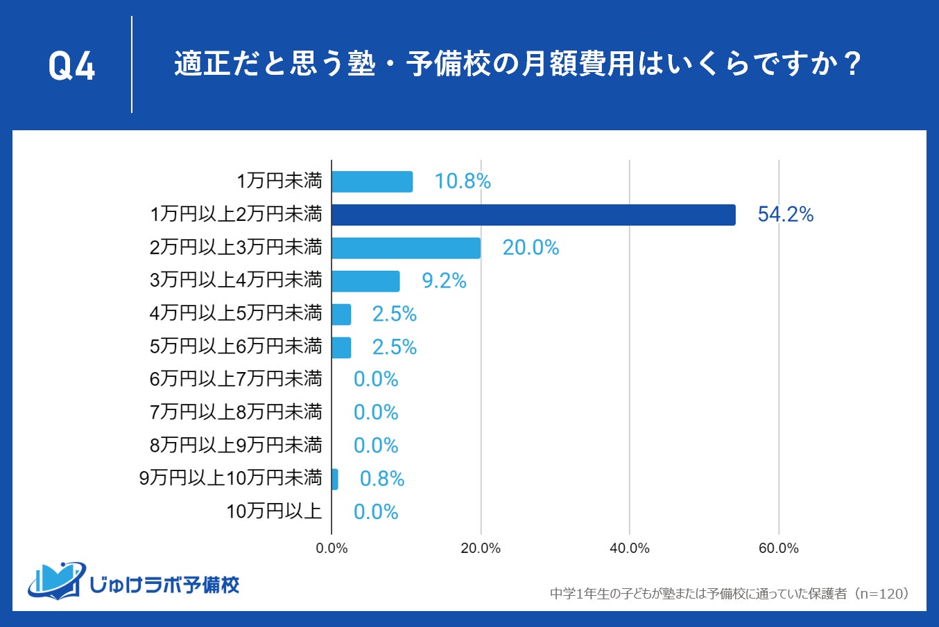 塾代の適正価格はいくら?中1保護者の過半数は1万円以上2万円未満を支持