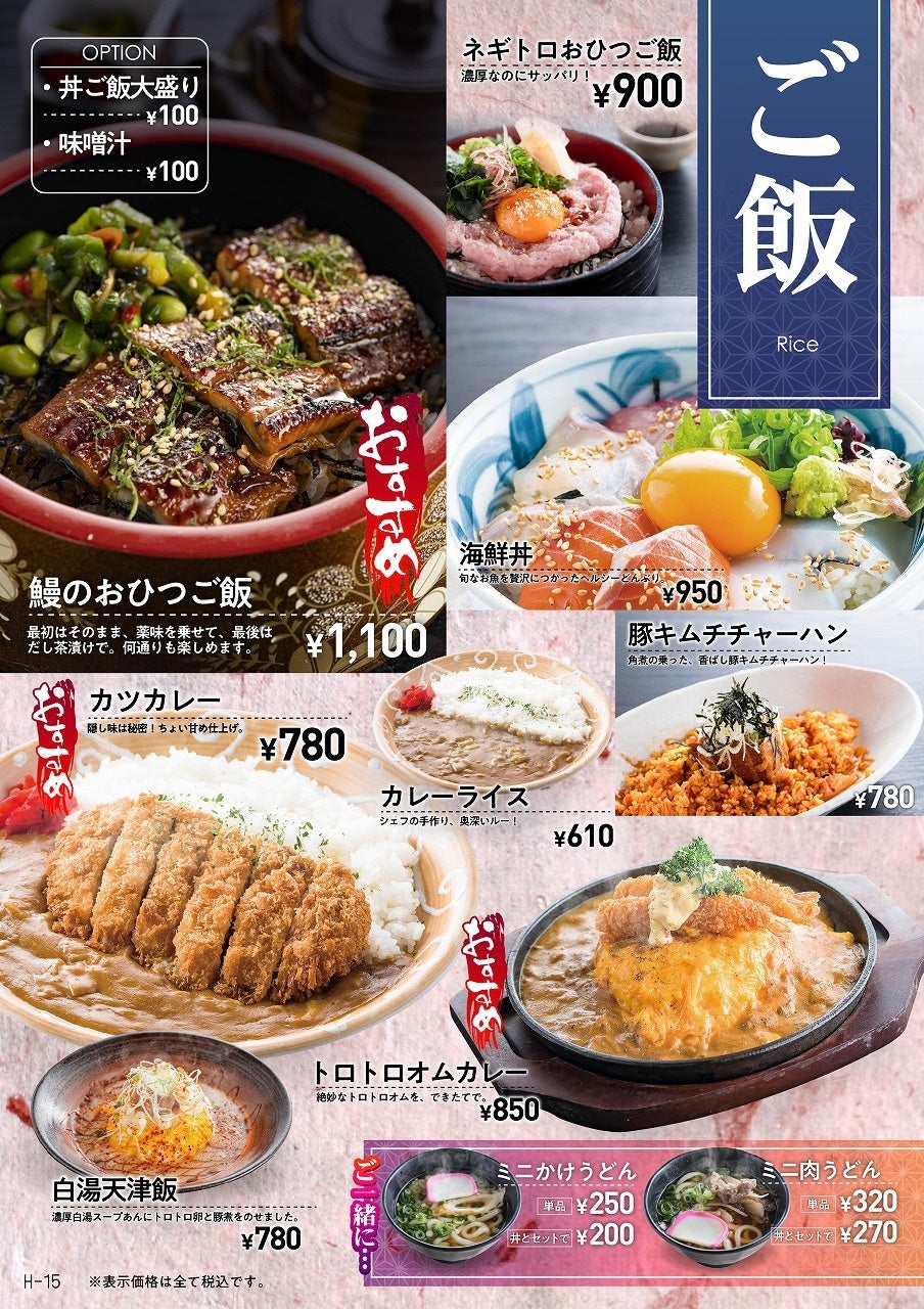 今回のリニューアルでは、20年以上にわたってフレンチ・イタリアン・創作和食などの各ジャンルで活躍し、愛媛県内で複数の店舗開発の経験をもつ岡崎弘真氏が料理を監修。地元・愛媛県産の食材を盛り込んだ魅力的なメニューを揃えました。約80品におよぶ新メニューには、オムミートパスタ、シーフードクリームパスタ、しらすと豆腐の和風サラダ、スタミナ焼肉ビビンバ、ドデカカツ丼などがあり、場面にあわせてさまざまな味わいをお楽しみいただけます。