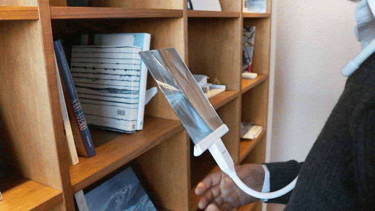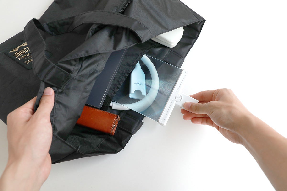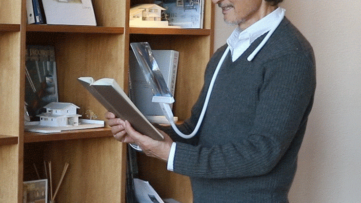 首にかけることで、読書やスマートフォン操作など、両手を使う活動が快適に。