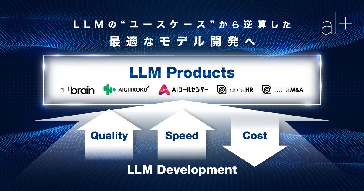 オルツは、大規模言語モデル(LLM)開発において、より複雑な表現力と高度なカスタマイズ性の両面を追求しています。デベロッパー及びエンドユーザー両方の観点から、GPTなどの既存モデルを超える使いやすさを実現するため、数兆パラメータ規模を持ち、日本語に優位なモデルの構築を構想してまいりました。大規模言語モデル(LLM)では、スケーリング則の元となる「パラメータ数」「データ量」「計算量」に加えて、スピードとコストのバランスを取ることが重要です。当社は、これらを適切に管理しながら、ユーザーにとって実用的なサービスを提供することを目指してまいります。