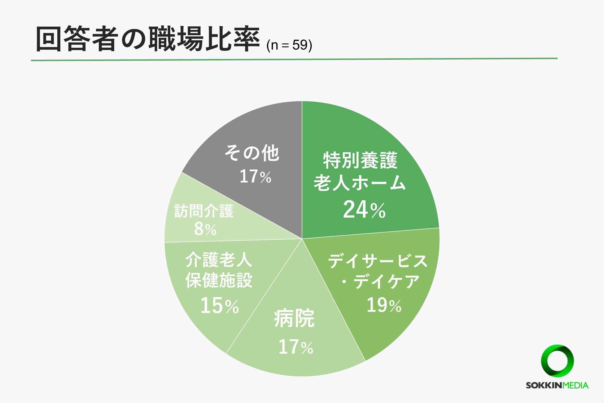 今回の調査で、回答した介護士の9割以上が勤務中に暑さが原因の体調不良を経験しており、その中でも最も多い症状は「疲れやすい」でした。また入浴介助中や、冷房のない環境での作業で体調不良になる介護士が多いということがわかりました。また6割以上が勤務中に熱中症になった経験がありました。熱中症対策としては8割以上が「こまめな水分補給」を挙げ、さらに熱中症対策グッズとしては「汗拭きシート」が最多でした。職場の熱中症対策に関しては8割以上の介護士が「職場に十分な熱中症対策がない」と感じていることが明らかになりました。株式会社SOKKINは、今後も介護士の皆さんがより良い職場環境で働けることを願いながら、現場の声にしっかりと耳を傾け、更なるサービス向上に努めてまいります。