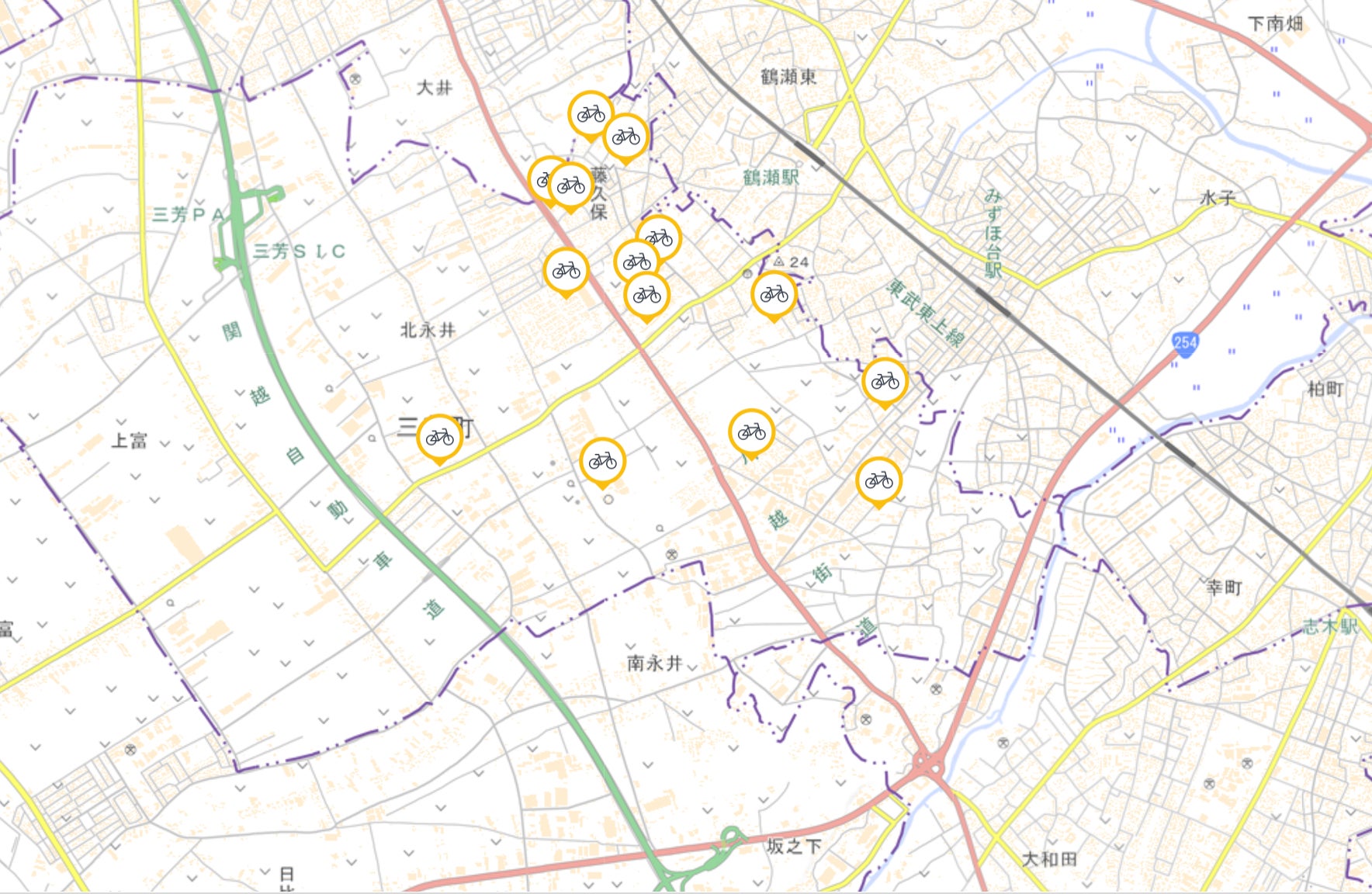 シェアサイクル事業は、三芳町役場や公民館、公園、集会所など町内16カ所から運用をスタートし、利用者数や利用者属性の効果検証を実施していきます。