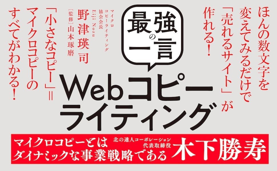 最強の一言となるWebコピーライティング=マイクロコピーを活用し、AI時代の初心者でも大手代理店に勝つ技術を学べる実践ノウハウ解説本。「誰でも驚くほど早く簡単に売り上げを伸ばすことができる方法」を世界各国のウェブサイトから優れたマイクロコピーの事例とともに解説。ChatGPTなどのAIツールと組み合わせてもっと効果的にアイディアを出す方法など、マーケッター・経営者・コピーライター必読の一冊です。