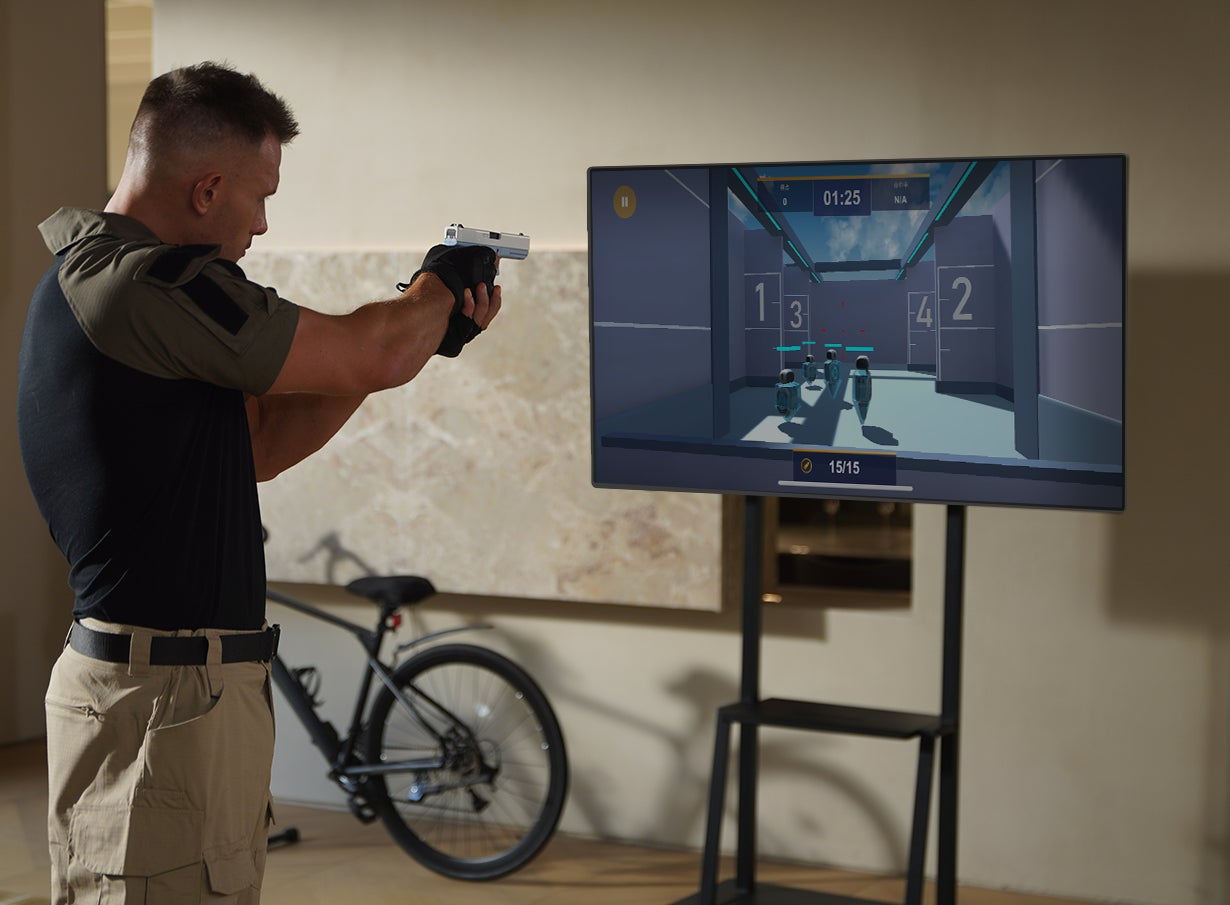 当社ではBB弾を飛ばさず、リビングで本格的なシューティングゲームを可能にする「スマホシューティングゲーム」を展開しています。