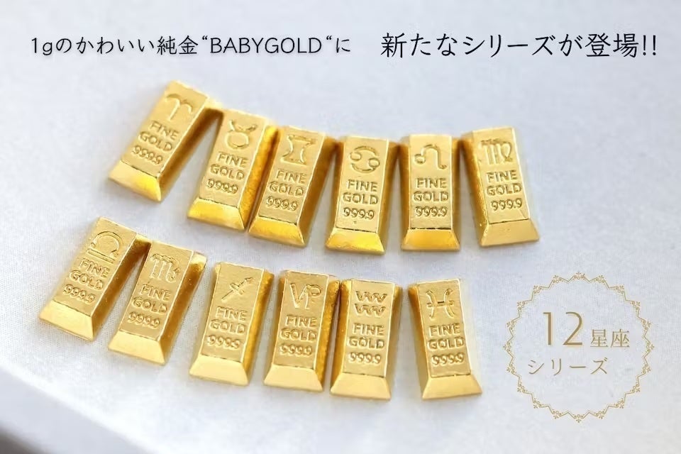 大人気!1gのかわいい純金「BABYGOLD」に新しいデザインが加わりました!今回はコレクションしたくなる12種類の可愛い星座です。