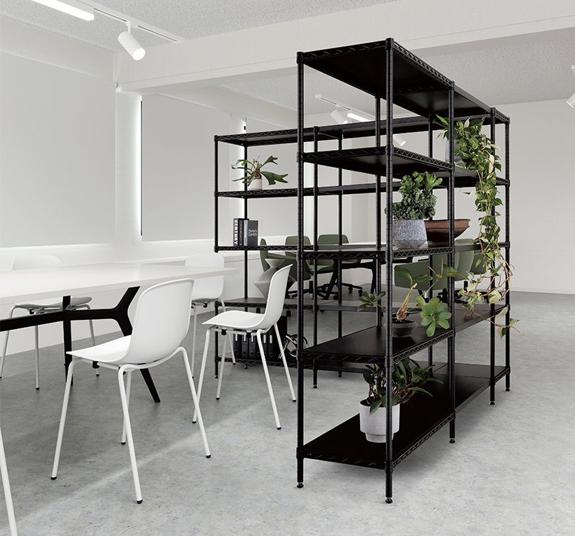スチール天板ならではの高い安定感と、ワイヤーシェルフの汎用性を兼ね備えたハイブリッドな特性により、これまでにない新しい価値を提供いたします。
