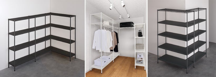 ポールが重ならないコーナー設置や柱回りのディスプレイ、壁面収納やワードローブ連携など、シーン別の使いこなしが広がります。