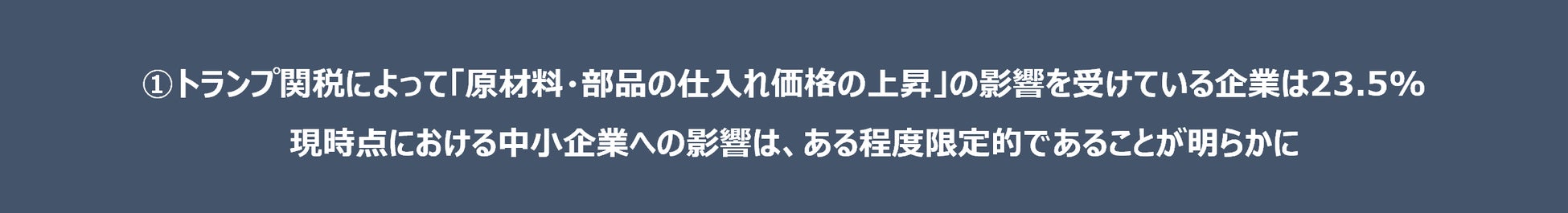 ①トランプ関税によって「原材料・部品の仕入れ価格の上昇」の影響を受けている企業は23.5%