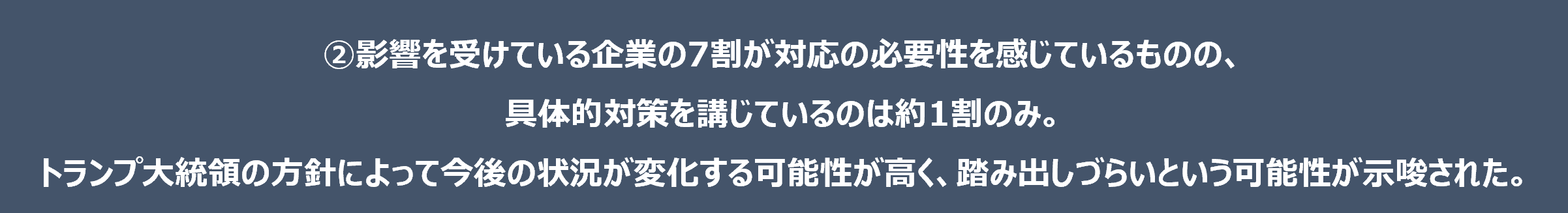 トランプ大統領の方針によって今後の状況が変化する可能性が高く、踏み出しづらいという可能性が示唆された。
