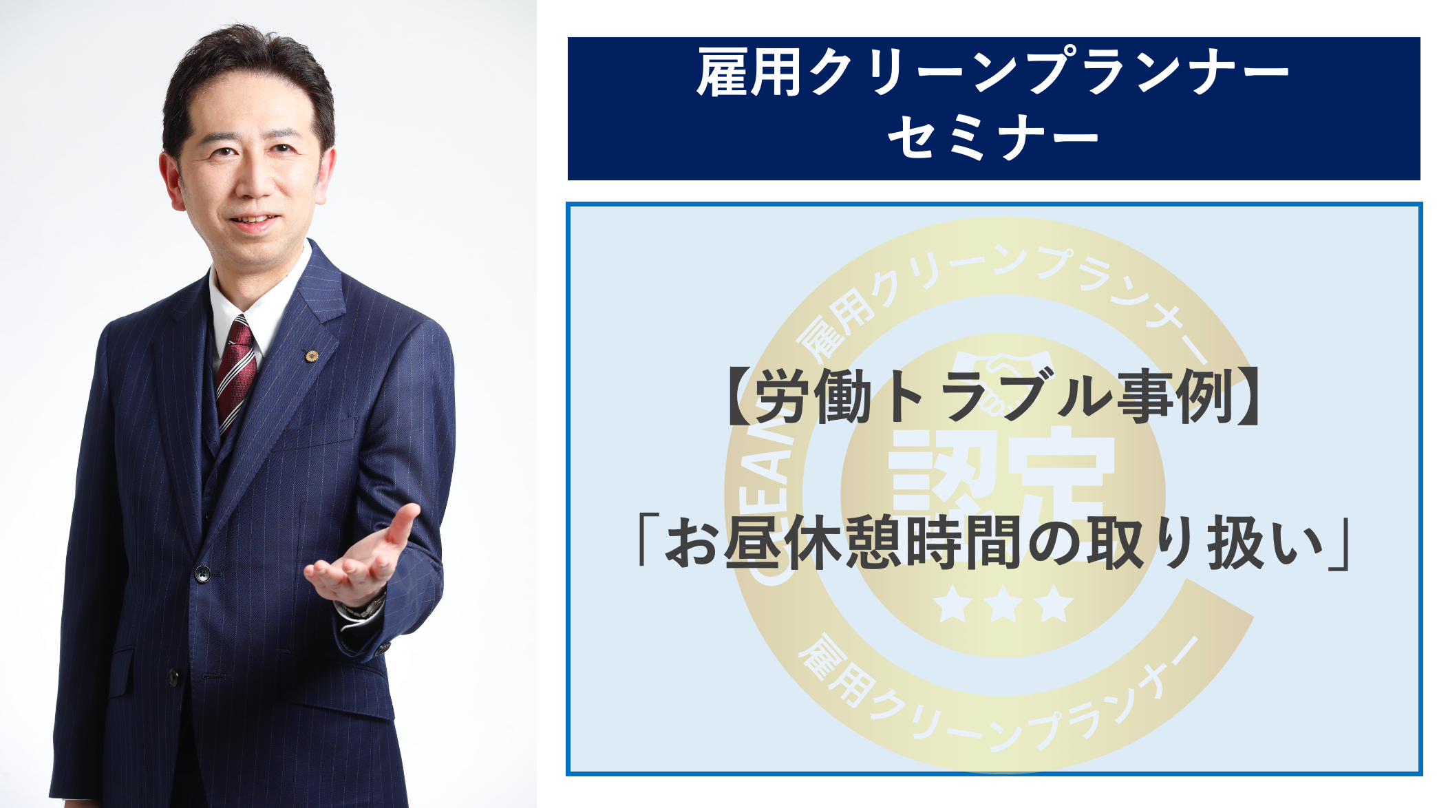 講師:雇用クリーンプランナー・特定社会保険労務士の小野純講師