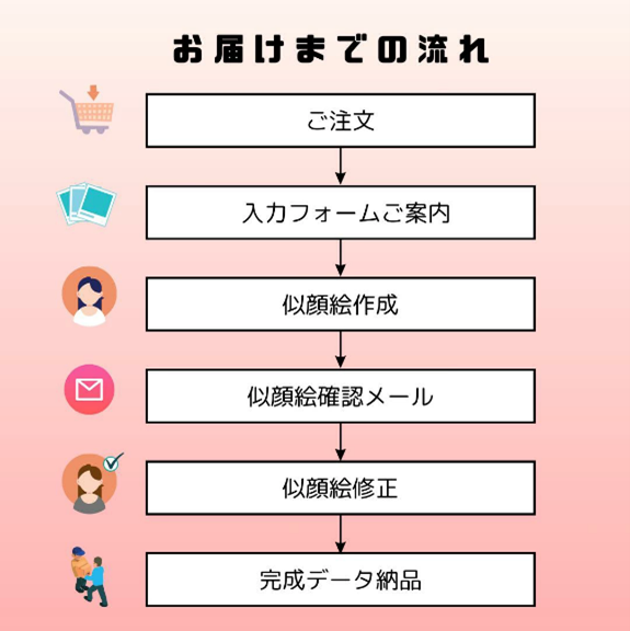似顔絵シールのサイズは、A…12mm×20mm(1シート100枚)、B…18mm×26mm(1シート56枚)のいずれか。初回は似顔絵制作費込み2シート8,000円(税込)で、初回購入後1年以内であれば印刷費だけ1シート1,200円、2シート1,500円、3シート1,800円(いずれも税込)で追加購入可能です。