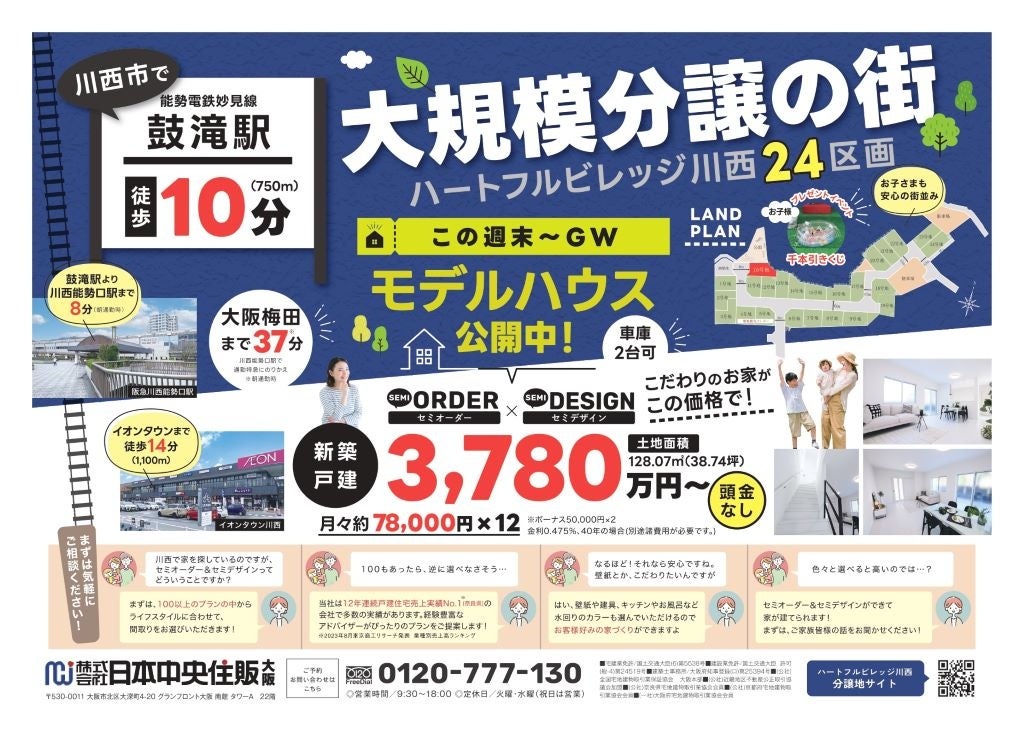 川西市新開発エリア、快適で便利な立地のモデルハウス公開 ― 魅力的なセミオーダープランもご紹介