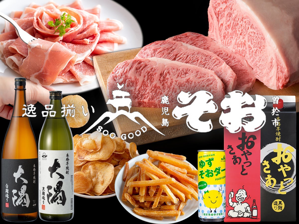 鹿児島といえばの黒毛和牛、芋のほか、九州一の栽培面積を誇る曽於市産柚子を使ったソーダなど多彩な逸品をそろえています。